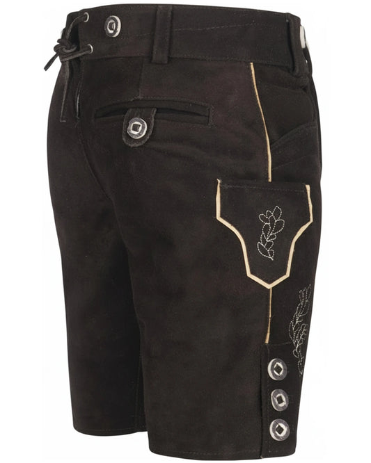 Trachten-Lederhose Eichenlaub – Dunkelbraun
