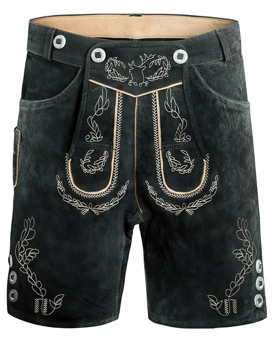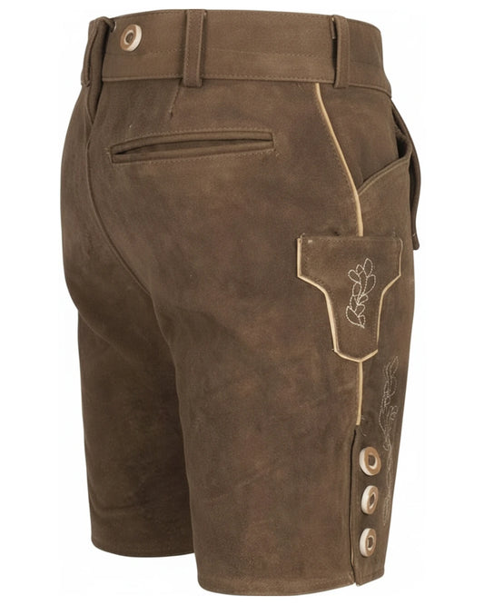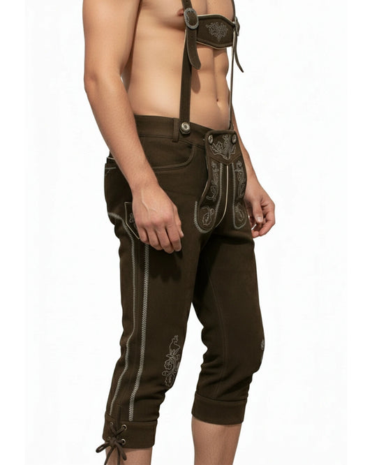 Trachten-Lederhose Eichenlaub – Dunkelbraun